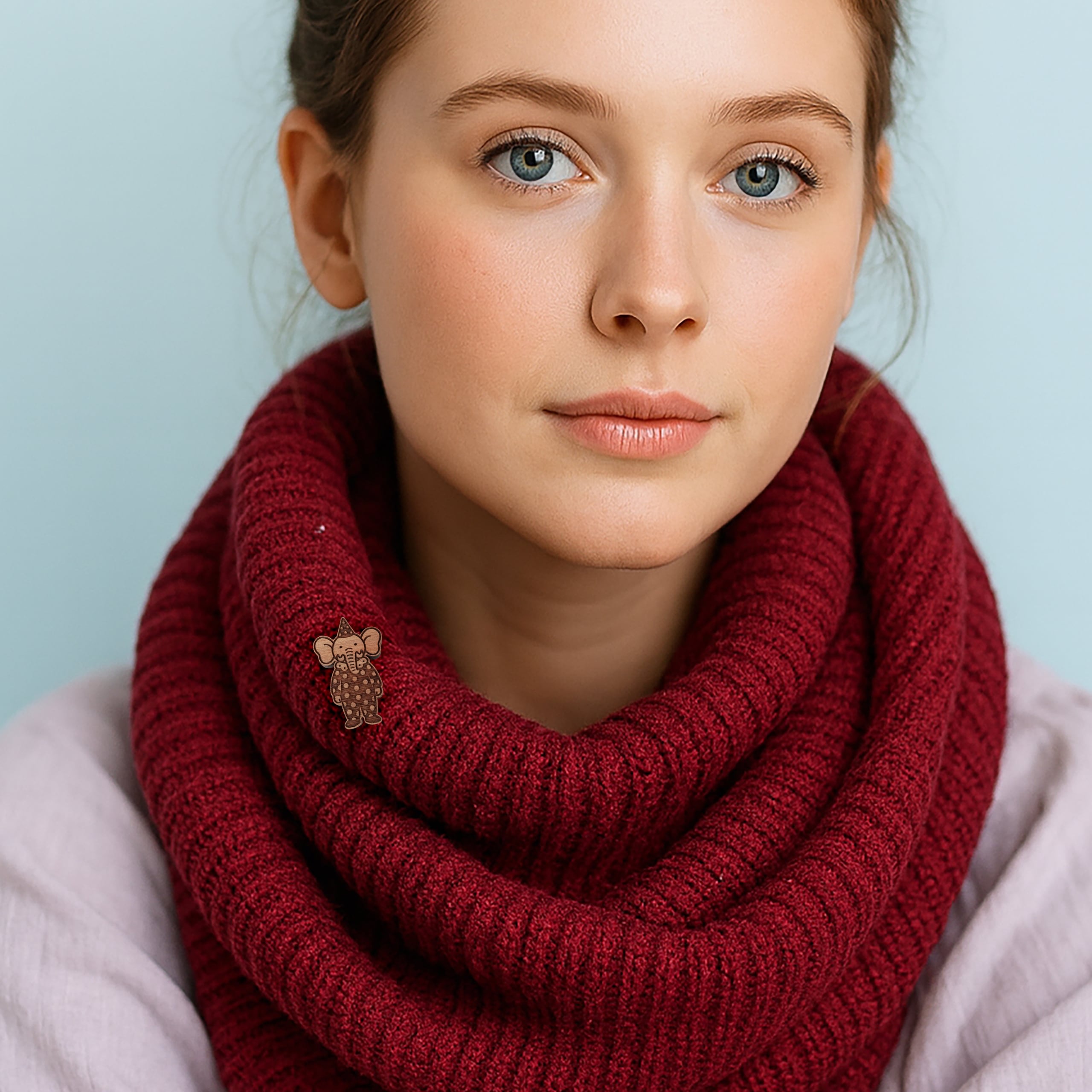 木のやさしい手触りと、ユニークなデザインが魅力のブローチ。