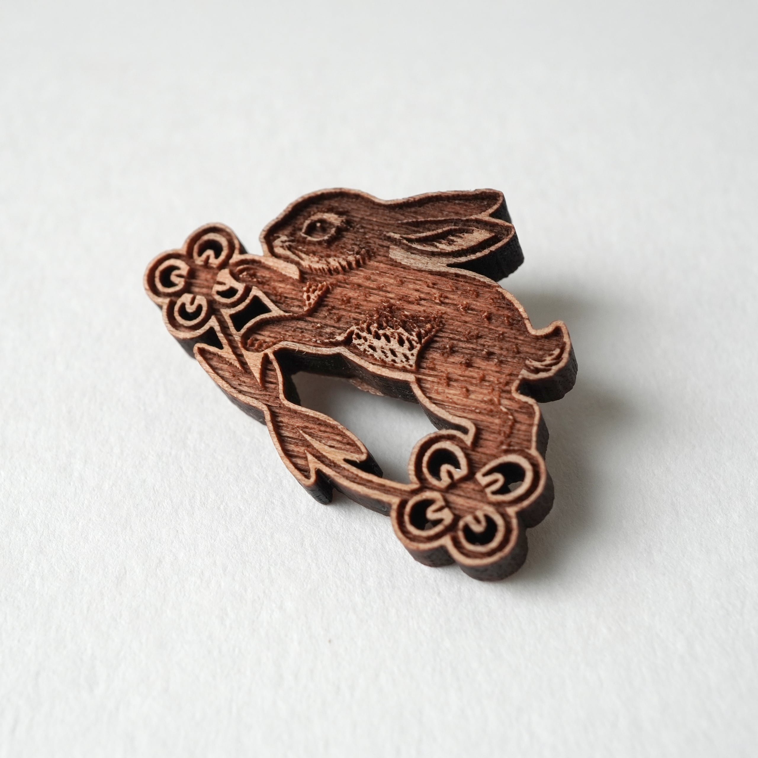 跳ねるうさぎの動きの中に、そっと花のモチーフを忍ばせた