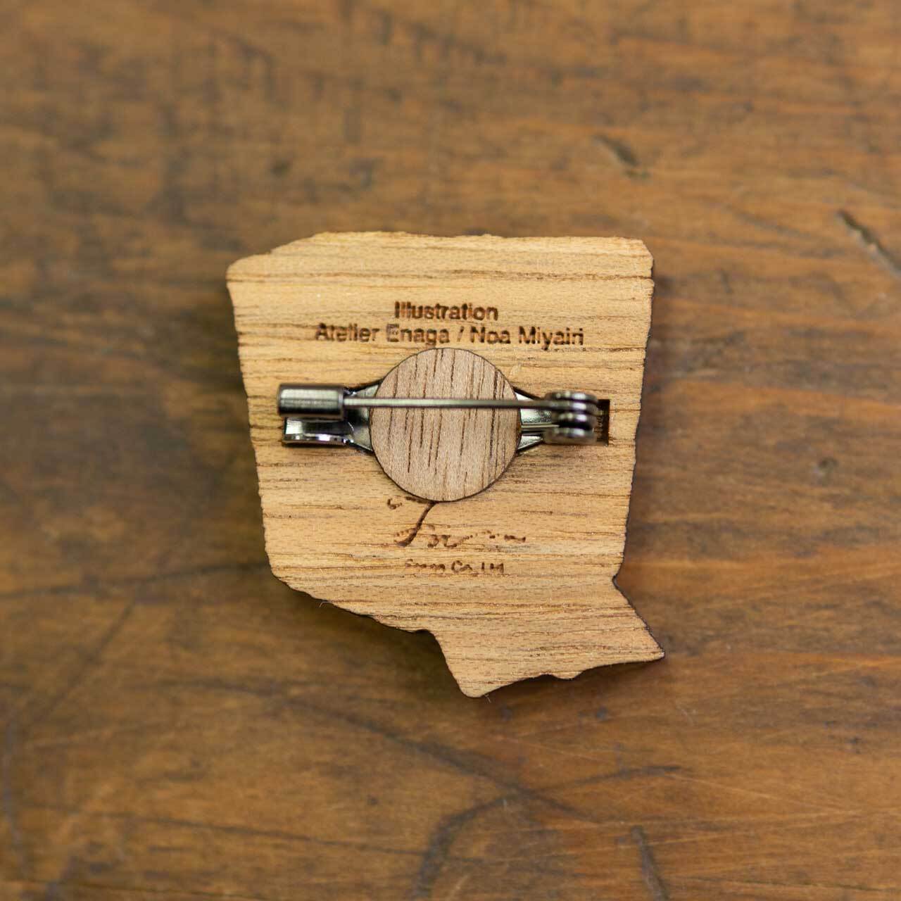 そんな情景をイラストレーター宮入の作品「accordion / 風を感じて」として形にしました。温かみのあるクルミ材に繊細なデザインが施されたこのブローチは、アコーディオンの形を思わせるフォルムで、見る人の心を惹きつけ、着けることで日常に彩りを添えます。柿渋と蜜蝋で仕上げられたその温もりは、使うたびに心を癒すひとときを届けてくれることでしょう。
