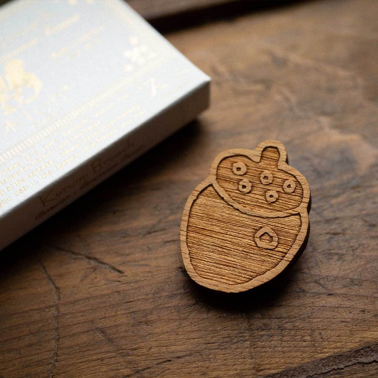 このブローチは、日本の森で育ったクルミの木を使用し、職人の手仕事によってひとつひとつ丁寧に仕上げられています。