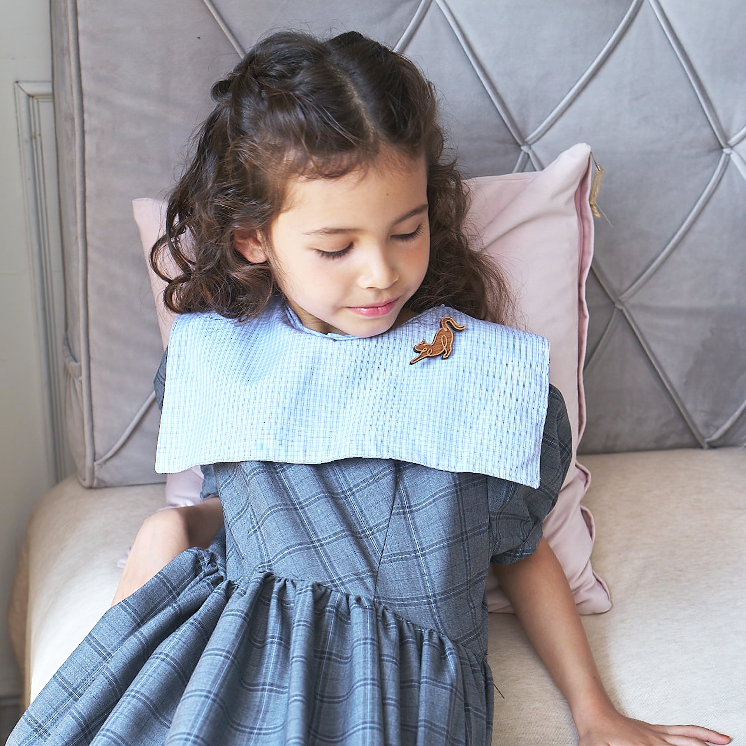 のびのびとリラックスした猫の姿を胸元に。
