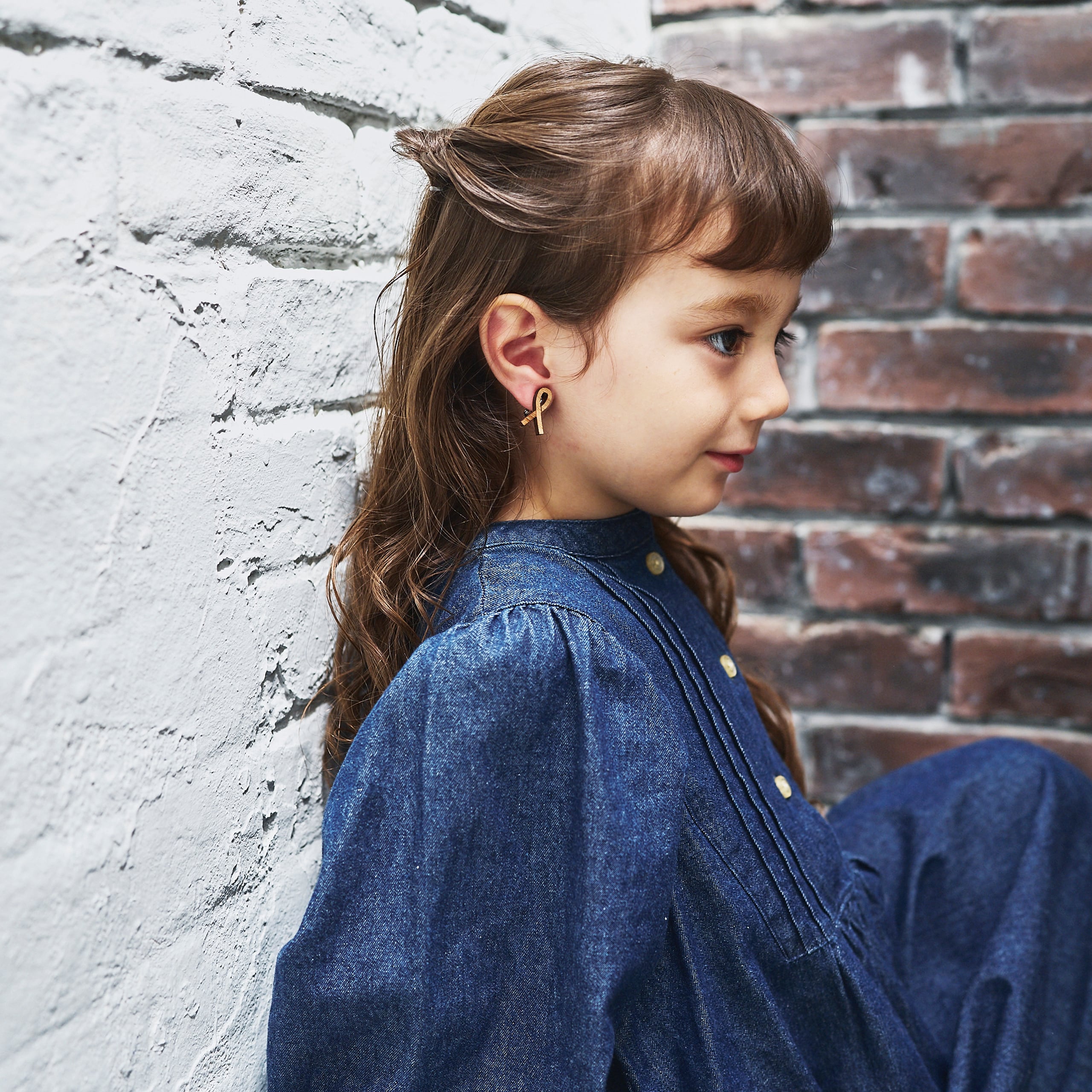 「cross ribbon / クロスリボン(Pierced Earring)」は、揺れずにしっかりと耳元に寄り添う、落ち着いた存在感のイヤリングです。